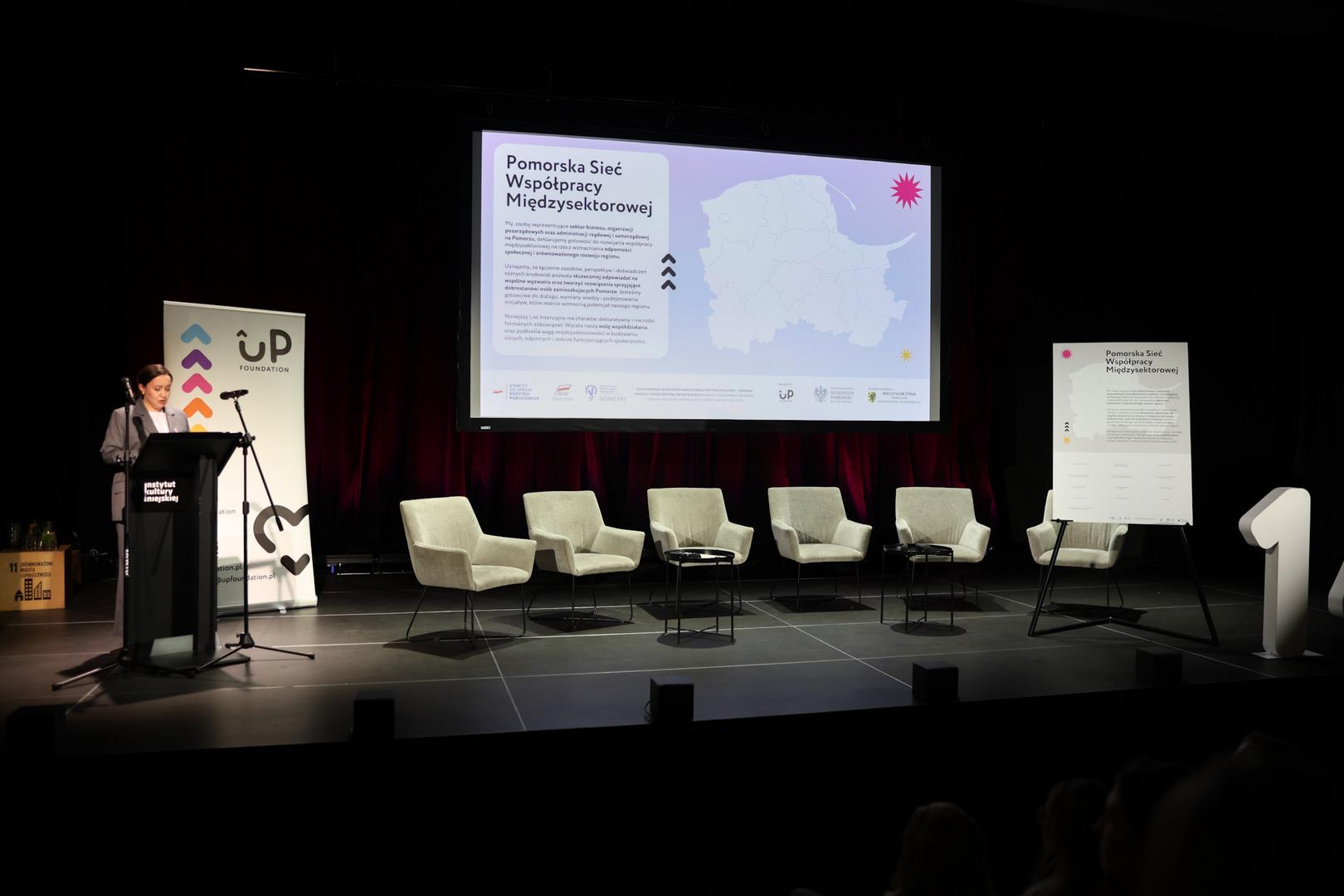 Najważniejszym punktem wydarzenia było uroczyste podpisanie Listu Intencyjnego na rzecz stworzenia Pomorskiej Sieci Współpracy Międzysektorowej. Treść dokumentu odczytała Monika Hinc, Przewodnicząca Rady Fundacji UP Foundation. Następnie na scenę zaproszono przedstawicieli administracji rządowej i samorządowej, biznesu oraz organizacji pozarządowych.