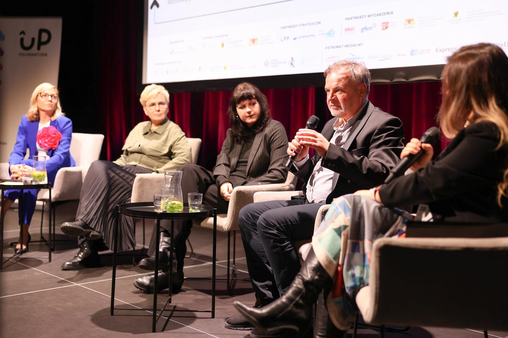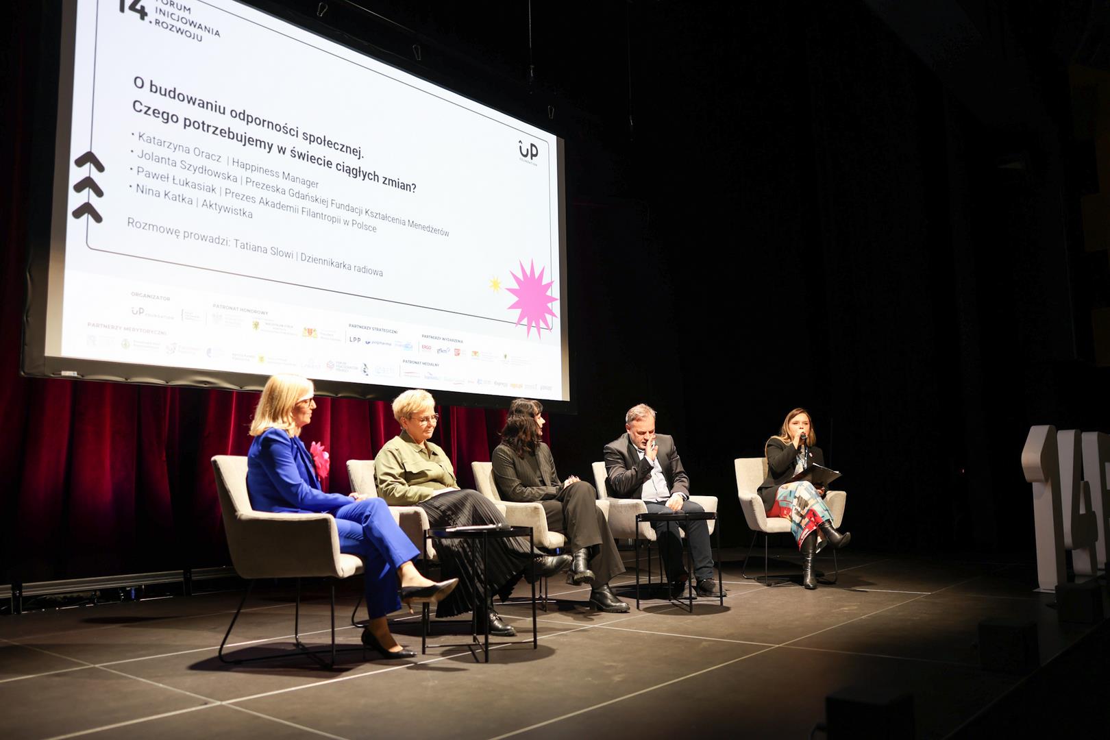 Druga debata – „Relacje i partnerstwo receptą na odporność społeczną” – prowadzona przez Ewę Wołkanowską-Kołodziej, zgromadziła reprezentantki Funduszu Inicjowania Rozwoju: Martę Dorobek (Malbork), Mirellę Makurat (Biblioteka Wojewódzka w Gdańsku), Ewę Patyk (GFIS), Aleksandrę Trościankowską (Masterki) oraz Agnieszkę Moskwę (Kolbudzka Scena Muzyczna). Opowiadały o współpracy z samorządami i biznesem, o tym, że rozwój społeczności bywa procesem wymagającym cierpliwości, otwartości i umiejętności działania mimo kryzysów. To rozmowa o praktyce, która codziennie zmienia lokalne środowiska.